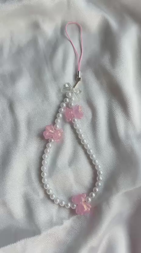 Upgrade your phone’s style and functionality with our trendy phone charm strap! Adorned with pearl accents, and cute teddy charms for a celestial vibe. Topped with a cute pearl bow charm at the top. Lightweight and handcrafted for daily style. It’s the perfect blend of fashion and practicality, offering both security and style in one charming accessory.